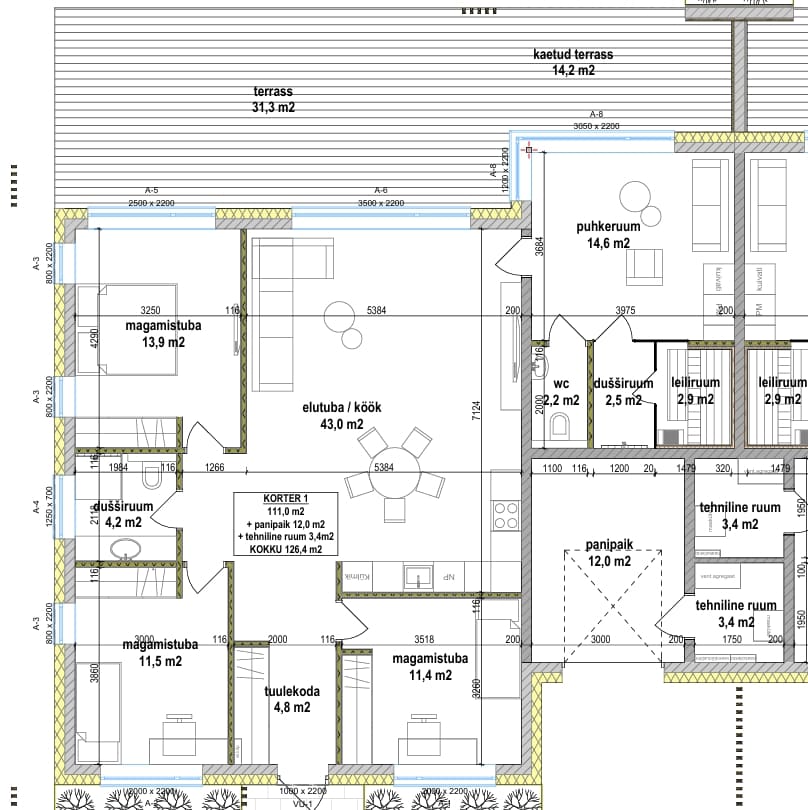 - Elamispind 126,4 m² (kogupind 171,9 m²)